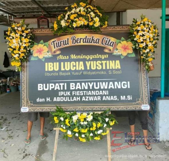 BANYUWANGI: Masyarakat Banyuwangi tiba-tiba dikejutkan oleh sebuah poto karangan bunga yang beredar luas utamanya di beberapa Grup WhatsApp (WA), baik Grup Sekber Media, LSM & DPRD maupun grup WA lainnya. Yang menyebabkan keterkejutan karena dalam foto tersebut bertuliskan “Turut Berduka Cita Atas Meninggalnya IBU LUCIA YUSTINA (Ibunda Bapak Yusuf Widyatmoko, S.Sos). Lalu di bawahnya bertuliskan pemberi ucapan “BUPATI BANYUWANGI: IPUK FIESTIANDANI dan H ABDULLAH AZWAR ANAS”. Sehingga memantik pertanyaan, benarkah Banyuwangi memiliki dua sosok Bupati sekaligus?