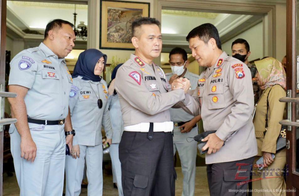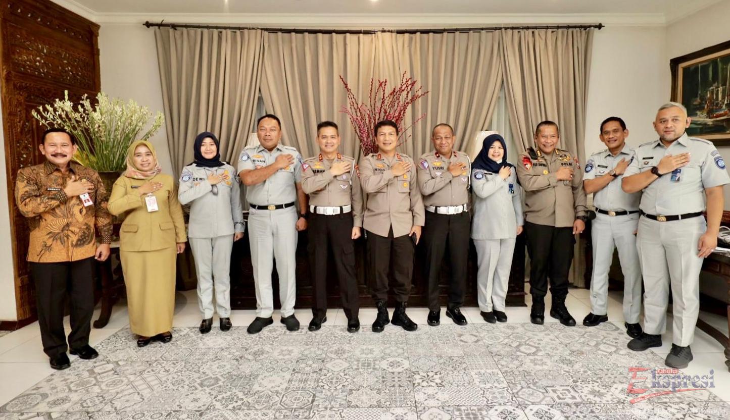 SURABAYA: Kapolda Jawa Timur (Jatim), Irjen Pol Nico Afinta dan Wakapolda Jawa Timur, Brigjen Pol Slamet Hadi Supraptoyo bersama Pejabat Utama Polda Jatim, mendampingi kunjungan kerja Kakorlantas Polri Irjen. Pol. Firman Santyabudi beserta rombongan. Di antaranya adalah, Dirregident Korlantas Polri, Brigjen Pol Yusri, Dirut PT Jasa Raharja, Rivab Achmad Purwantoro dalam rangka silaturahmi dan kunjungan kerja tim pembina Samsat Nasional di Provinsi Jawa Timur pada Kamis (11/8/2022).