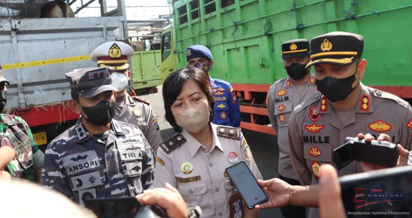 Pengawasan lalu lintas hewan ternak di Pelabuhan ASDP Ketapang Banyuwangi langsung dilakukan oleh Kapolresta Banyuwangi Kombes Pol Dedy Foury Millewa dan Danlanal Letkol Laut (P) Ansori.
