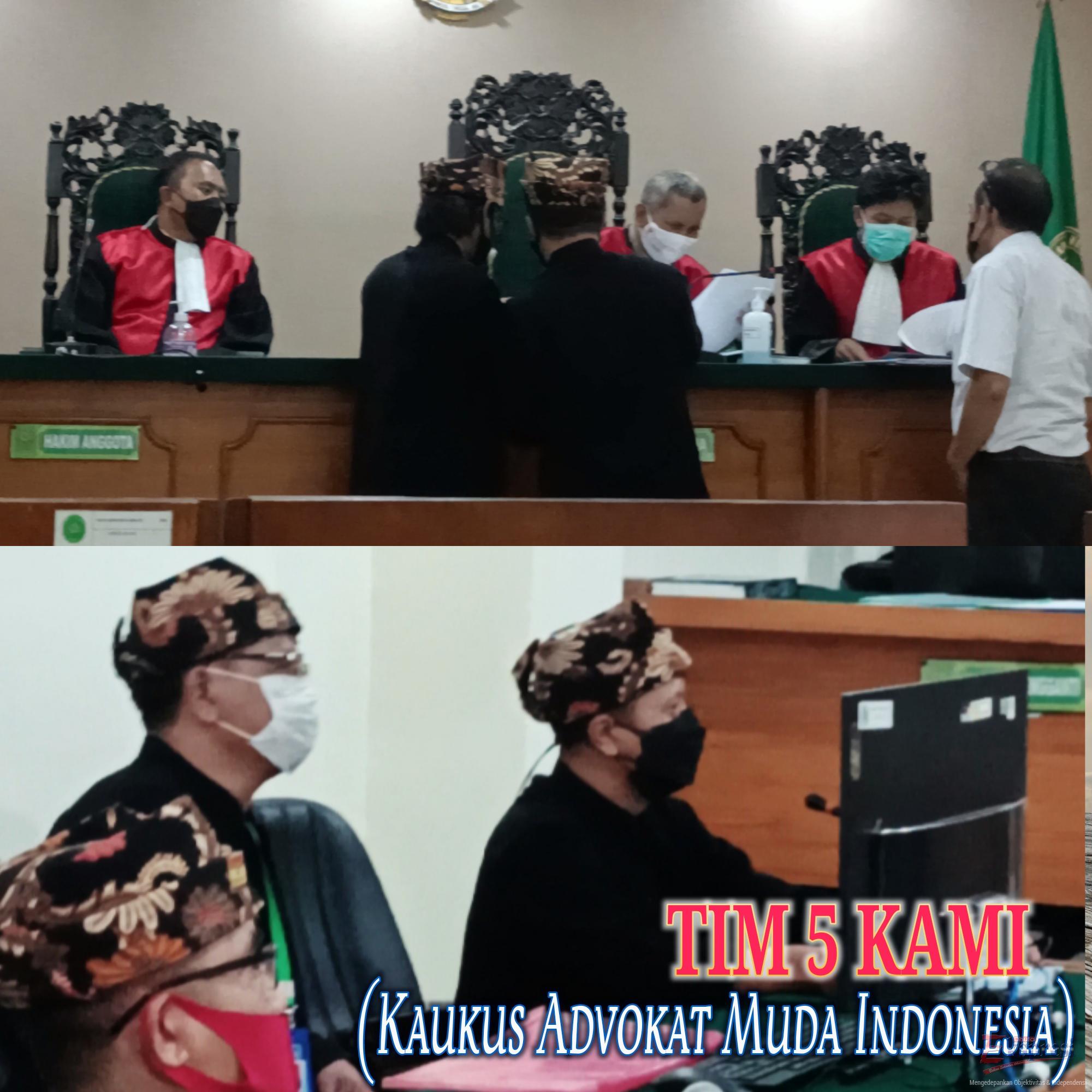 BANYUWANGI: Untuk pertama kalinya, Tim 5 Kaukus Advokat Muda Indonesia (KAMI) di bawah naungan “Cahaya Keadilan Law Firm” Banyuwangi – Jawa Timur, telah menorehkan catatan sejarah. Yakni menghadiri persidangan perkara nomor: 196/Pdt.G/2021/PN.Byw di Pengadilan Negeri Banyuwangi, (19/10) terkait gugatan baru Citizen LawSuit (gugatan warga negara) terhadap Bupati Banyuwangi, Ipuk Fiestiandani, Tim 5 KAMI kompak mengenakan pakaian kehormatan khas adat Banyuwangi berwarna serba hitam. Hal itu sengaja dilakukan mengingat pelepasan 1/3 kawasan gunung Ijen ke Kabupaten Bondowoso oleh Bupati Ipuk bersangkut paut dengan nilai-nilai filosofis, historis, yuridis serta ekonomis sebagai marwahnya Blambangan Banyuwangi.