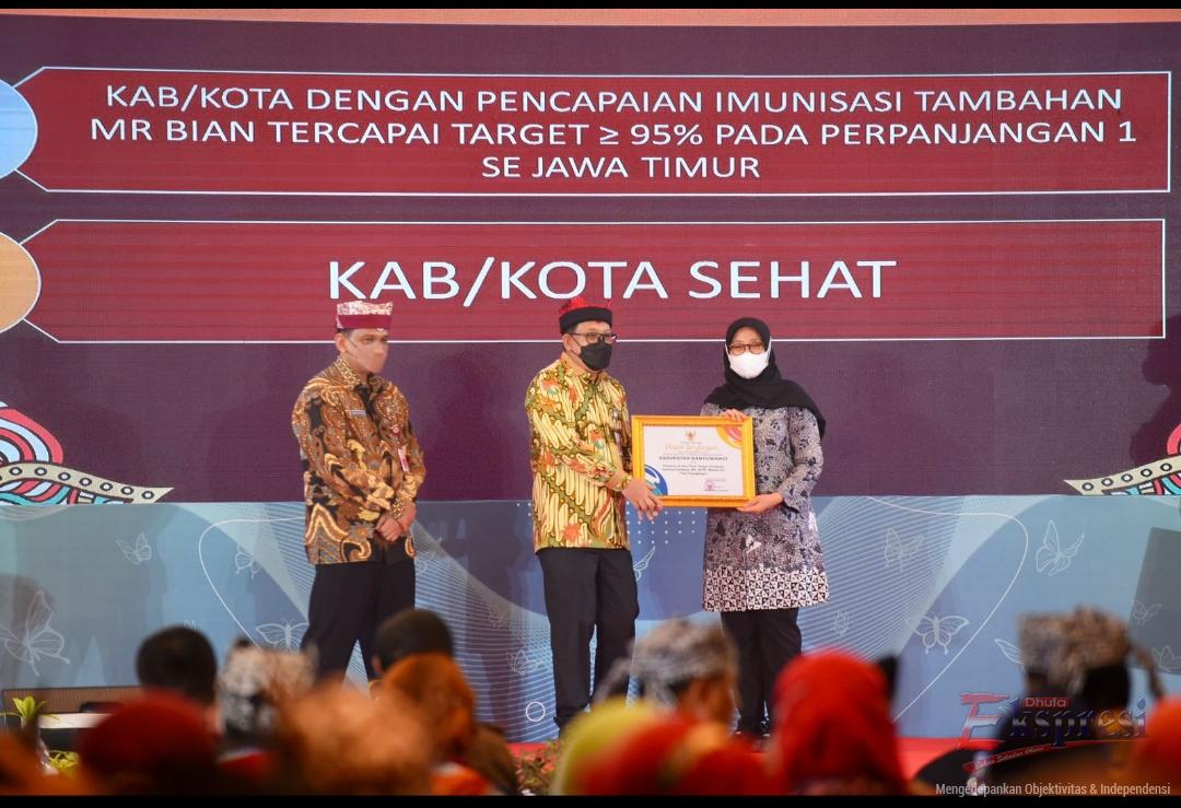 Selain itu, juga diberikan penghargaan kepada kabupaten/kota dan insan kesehatan yang dinilai menjadi teladan dalam penangan kesehatan di Jatim. Total ada 102 penghargaan. Pemkab Banyuwangi sendiri mendapatkan penghargaan sebagai daerah dengan capaian imunisasi MR (Measles dan Rubella) pada Bulan Imunisasi Anak Nasional di atas >95 persen pada perpanjangan 1 se-Jawa Timur. Banyuwangi juga mendapatkan penghargaan sebagai Kabupaten Sehat Swasti Saba Wistara.