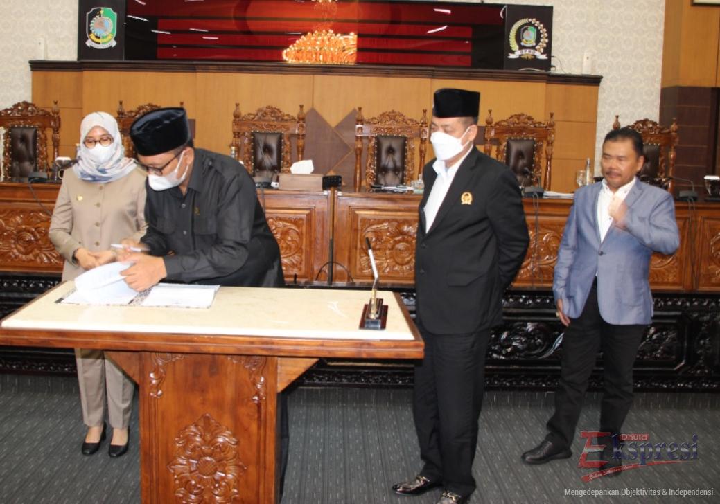 “Dengan disetujuinya Raperda pertanggungjawaban pelaksanaan APBD tahun 2020, berarti kita telah berhasil menetapkan produk hokum daerah yang menjadi acuan kita dalam melaksanakan APBD lebih baik dan dapat manfaatnya dapat dirasakan oleh masyarakat Banyuwangi , “ ungkap Bupati Ipuk Fiestiandani. (Yadi/Tim Dhuta Ekspresi)